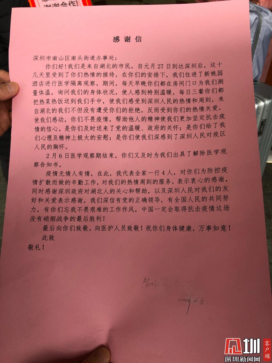 暖心故事| 一封來自南頭街道隔離者的感謝信:總有一束光照亮黑暗